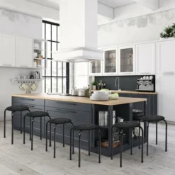 Emma And Oliver 24″ Counter Height Stool With Swivel Lift Black LeatherSoft Seat
