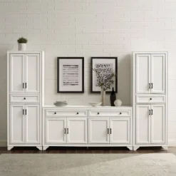 3pc Tara Sideboard And Pantry Set Distressed White – Crosley