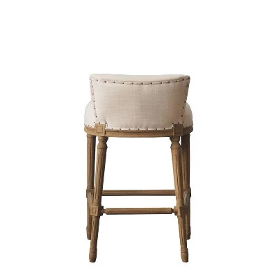 Cozy, rustic seating is as simple as swapping out your current bar stools for the Francesca Stationary Bar Stool. This low back barstool is a fun addition to a home bar or kitchen island. It’s constructed with an oak wood frame and then the seat and back are lightly padded for your comfort. Tan linen upholstery is complemented by nailhead trim around the edges of the seat. The carved legs feature decorative fluting, which adds even more visual panache. Manufactured with precise attention to detail, the Francesca embodies features that are most important when searching for furniture seating.