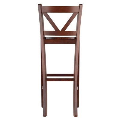 The Kingsgate 3pc Set High Table with V-Back Bar Stools – Walnut – Winsome is inspired by pub table designs but has a domestic feel. This wooden bar table has a high profile similar to a bar table. A square table top seat up to four comfortably. Elegant grooves on the apron and legs accent the design. Two V-back wooden bar stools complete this tasteful table set. Table assembled size is 33.86″W x 33.86″D x 38.90″H plus Two V-Back Bar Height Stools. Each Stool stands at 16.93″W x 19.21″D x 42.17″ in overall size. Seat dimension is 16.54″ to 14.26″W x 15.55″D. Back rest is 16.93″W x 12.17″H. Seat height is 30″ from ground.