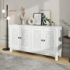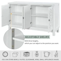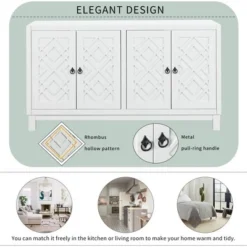 - [Classic Design] The door of this sideboard is designed with a rhombus hollow pattern and a metal pull-ring handle, which presents a simple and atmospheric style.