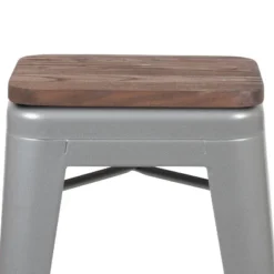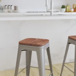 - Set Of Four 21st Century Contemporary Metal Bar Stools With Wood Seat