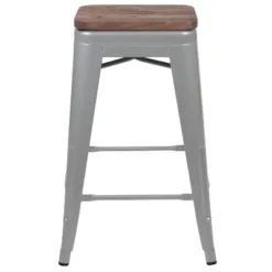 Contemporary counter stools that are industrial without the smokestacks and elegant without the attention. Metal framing gives these counter height stools their sleek appearance along with enduring qualities, while the rustic wood seat provides a certain sense of classic style. The backless seat allows this counter stool to be minimalist and easily maneuvered or moved such as tucking it underneath your countertop.