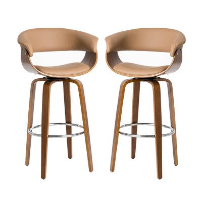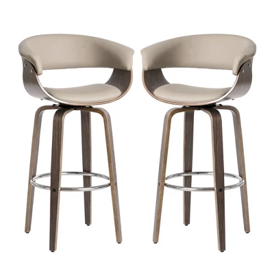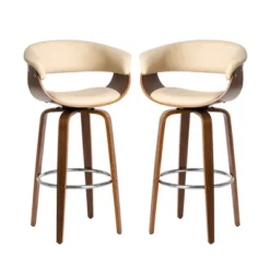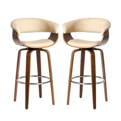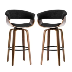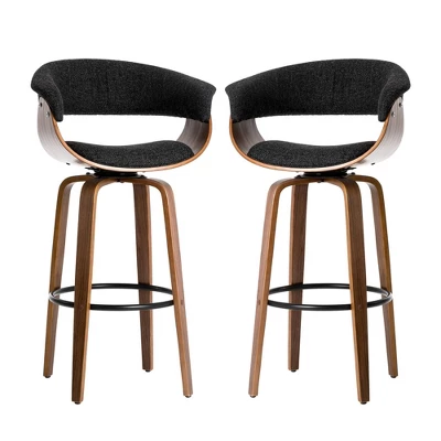 Set Of 2 Mid-century Modern Walnut Bentwood Swivel Barstools – Glitzhome