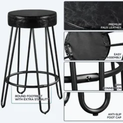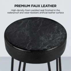 - 【Sleek & Luxurious】The combination of quality leather upholstery and black metal legs creates a sleek accent to your home, which is perfect for contemporary home decor. With round backless seats and geometric legs, these kitchen chairs are designed to upgrade your kitchens, dining rooms, home bars, restaurants, café, etc.